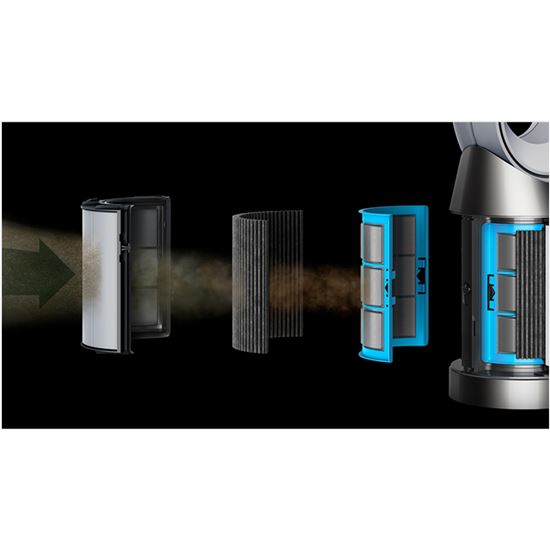 Čističky vzduchu Dyson jsou vybaveny technologií Air Multiplier™. Vytvářejí proud vzduchu, díky kterému jsou do spotřebiče nasávány znečišťující látky i ze vzdálenějších koutů, a který distribuuje vyčištěný vzduch do celé místnosti. 3 - Plné utěsnění dle standardu HEPA H13