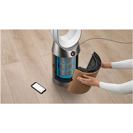 Katalytický filtr Dyson nepřetržitě zachytává a rozkládá molekuly formaldehydu1 na vodu a CO2. A není potřeba jej nikdy měnit. - Čistí vzduch v celé místnosti