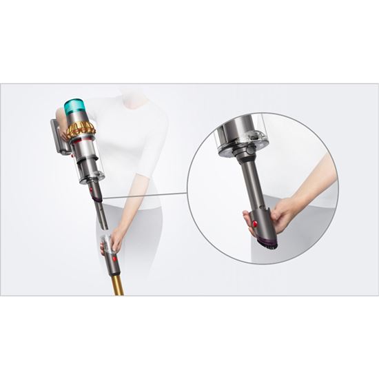 V automatickém režimu monitoruje technologie Dyson DLS™ (Dynamic Load Sensor) 360x za sekundu odpor rotačního kartáče uvnitř podlahové hubice Digital Motorbar™ a automaticky upravuje výkon podle typu podlahy. - Karbonová vlákna
