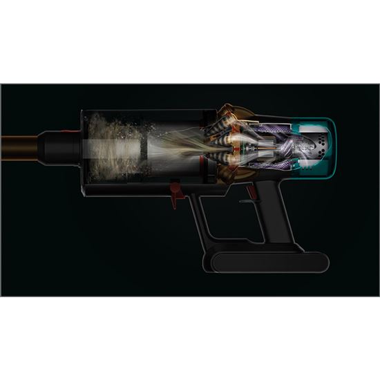 14 cyklonů vytváří odstředivé síly až 100 000 G k zachycení prachu a nečistot z proudu vzduchu, takže nedochází ke ztrátě sání. - Akumulátor s vysokou hustotou energie