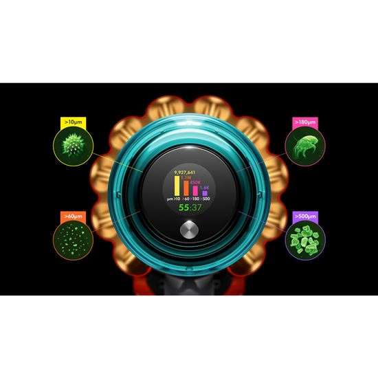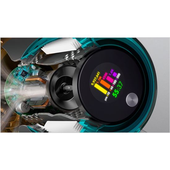 LCD displej ukazuje, co bylo vysáto, v reálném čase zobrazuje vědecký důkaz o důkladném úklidu. - Motor Dyson Hyperdymium™