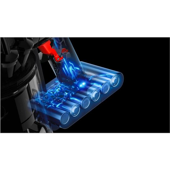 Dyson V8 je napájen Li-Iontovým akumulátorem s nikl-kobalt-hliníkovou elektrodou poskytujícím proud až na 40 minut provozu2 bez toho, aby klesal sací výkon. - Vysoce účinný filtrační systém s utěsněním celého spotřebiče