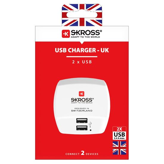 SKROSS USB nabíjecí adaptér UK, 2x USB-A, 12W, typ G