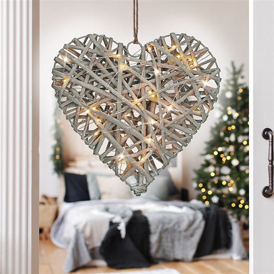 ratanové srdce s LED diodami