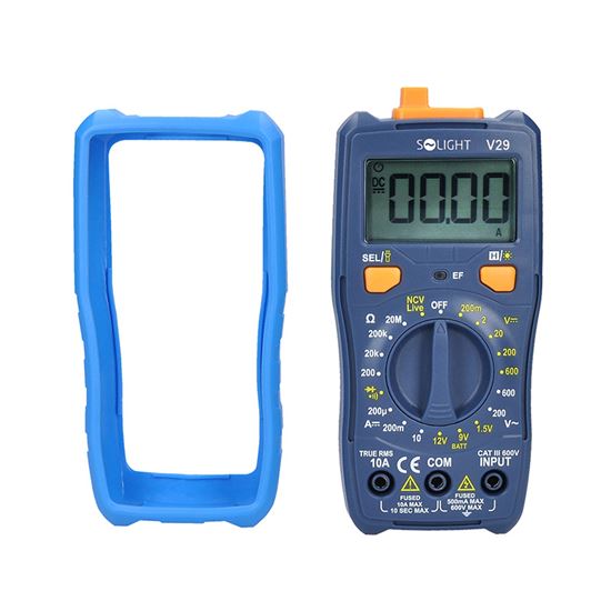 Digitální multimetr pro měření AC/DC napětí, DC proudu, odporu, a true RMS (efektivní hodnota střídavých průběhů). Nabízí tranzistorový a diodový test, test spojitosti obvodu, bezkontaktní detektor napětí (NCV), a zkoušečku vodičů pod napětím (LIVE). Funkce HOLD pro uložení naměřené hodnoty a LED svítilna pro lepší viditelnost. Ochrana proti přetížení s pojistkami 10A/600V a 500mA/600V. Napájení: 2x AAA baterie (součástí balení). Rozměry: 154x75x35 mm, hmotnost: 182g.