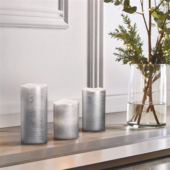 • sada LED svíček z vosku s přirozeně blikajícím plamenem ve stříbrné barvě