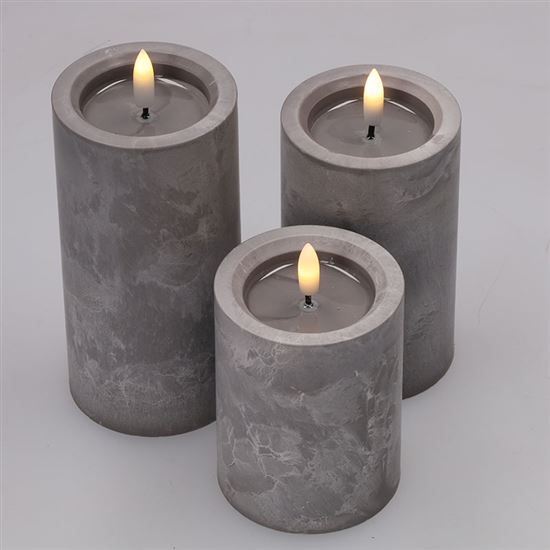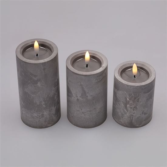 Vytvořte si elegantní atmosféru s LED svíčkami s efektem přirozeně blikajícího plamene a luxusním dekorem šedého mramoru. Tato sada tří svíček vnese do vašeho interiéru moderní a útulný vzhled bez nebezpečí otevřeného ohně.