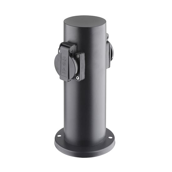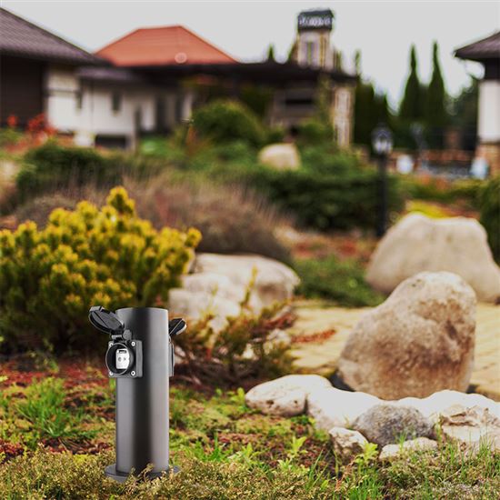 Dvě zásuvky s dětskými pojistkami jsou chráněny samouzavíratelnými krytkami, které brání vniknutí vlhkosti a nečistot. Díky krytí IP44 je sloupek vhodný i pro použití za deště nebo ve vlhčím prostředí. Zásuvky zvládnou zátěž až 3680 W (16 A při 230V~), což je ideální pro venkovní osvětlení, zahradní techniku i běžné spotřebiče. Vhodný pro domy, pergoly i firemní areály.