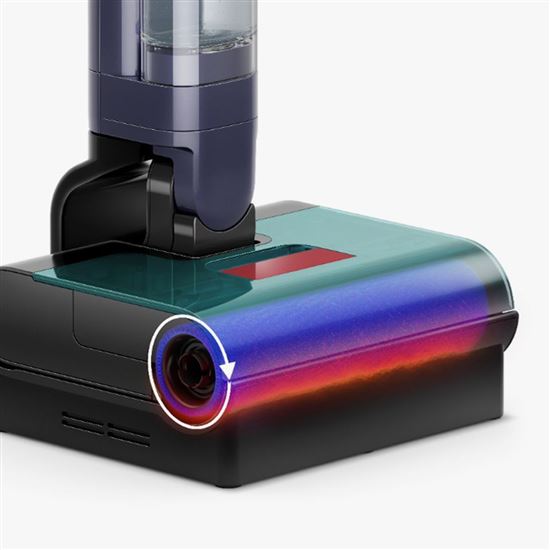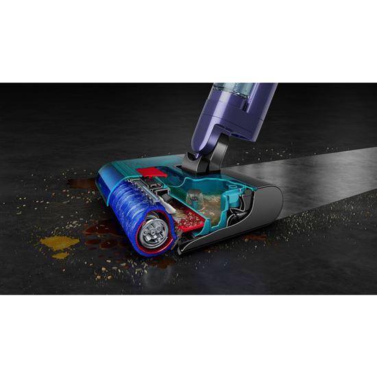 Motor Dyson otáčí rotačním kartáčem vysokou rychlostí, aby rychle a účinně odstraňoval prach, nečistoty i rozlité tekutiny. Ultraabsorpční rotační kartáč z mikrovlákna zachycuje zbytky vody a zanechává podlahu beze šmouh. Díky tomu zůstává na povrchu méně než 1 g vody na metr čtvereční, takže podlaha uschne přibližně do 60 sekund.
