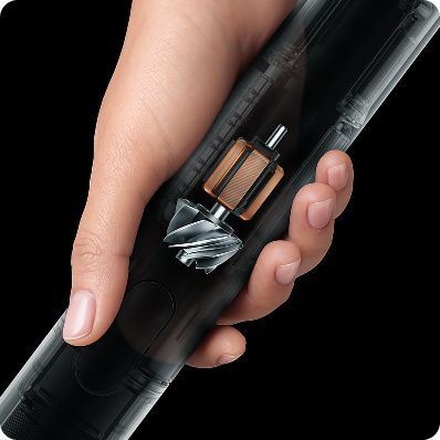 Navržená speciálně pro tvrdé podlahy. Poskytuje maximální kontrolu a mimořádně hladký skluz. Hubice FluffyCones™ nabízí výjimečnou manévrovatelnost, díky níž snadno objíždíte nábytek, dostanete se do rohů a dosáhnete i pod nízké prostory. Čtyři kónické kartáče pracují synchronně a vytvářejí spirálový efekt, který účinně zachytává prach, drobné nečistoty i dlouhé vlasy, aniž by se namotávaly. O precizní kontrolu čistoty se stará LED osvětlení umístěné vpředu i vzadu, které odhalí i mikroskopické částice, které byste jinak neviděli.