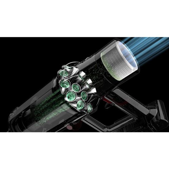 14 cyklon separuje pomocí odstředivé síly převyšující 79 000 G. Díky vzduchotěsnému provedení bloku cyklon a tlakovému pryžovému těsnění kolem zdokonaleného filtru je celý systém naprosto vzduchotěsný – to brání úniku prachu, alergenů a bakterií zpět do okolního ovzduší. Vysavač tak zachytává 99,97% prachových částic již od velikosti pouhých 0,3 mikronu a vypouští vzduch, který je čistější než ten, který dýcháte. Filtry před a za motorem jsou za účelem snadnější údržby integrovány do jedné společné jednotky.