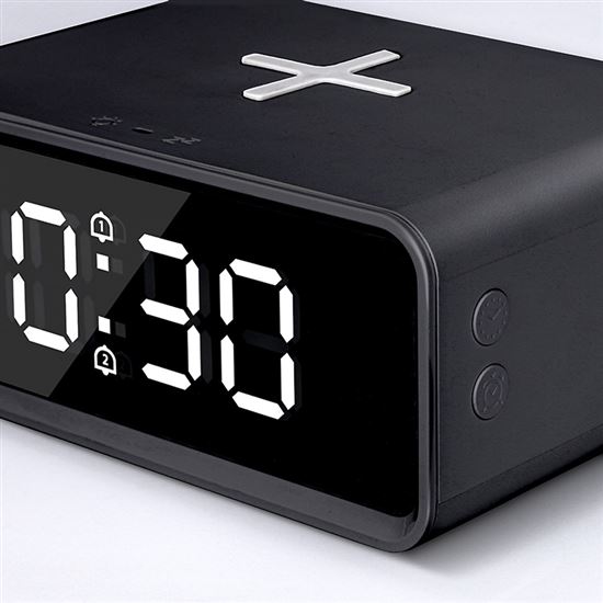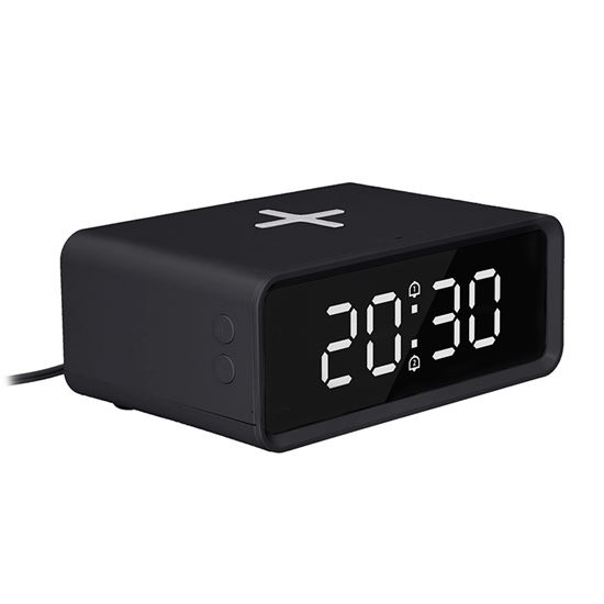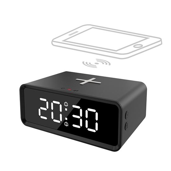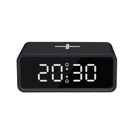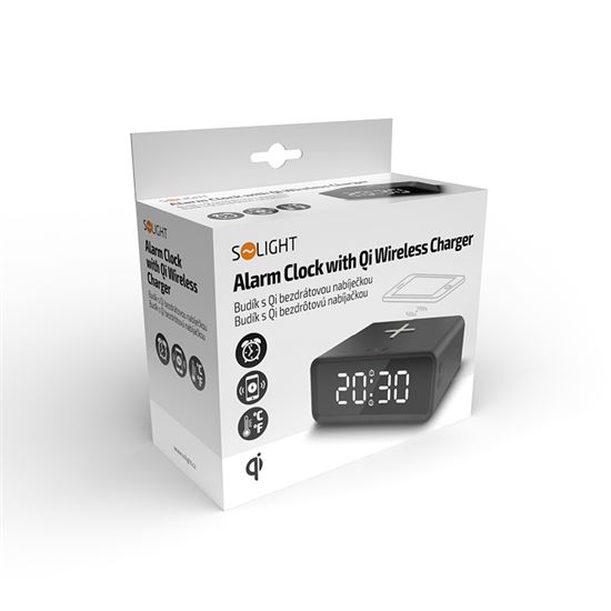Hodiny s Qi bezdrátovou nabíječkouHodiny s bezdrátovým nabíjením – stylový a praktický doplněk. Tyto moderní hodiny kombinují bezdrátovou nabíječku (Qi, max. 15W), hodiny, teploměr a dvojitý budík s funkcí snooze. Velký LED displej s vysokým rozlišením umožňuje volbu mezi zobrazením pouze času nebo střídáním času a teploty. Nastavitelný jas displeje (3 úrovně + vypnutí) zajišťuje pohodlné používání i v noci. Protiskluzová podložka udrží telefon bezpečně na místě během nabíjení. Napájení přes DC5V-9V/2-3A, záložní baterie CR2032 uchová nastavení při výpadku napájení.