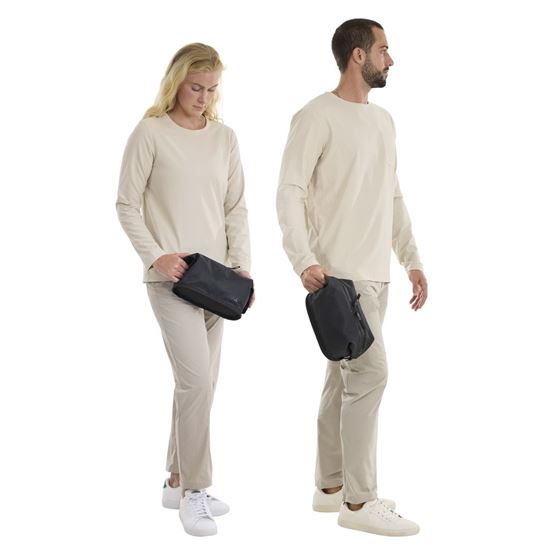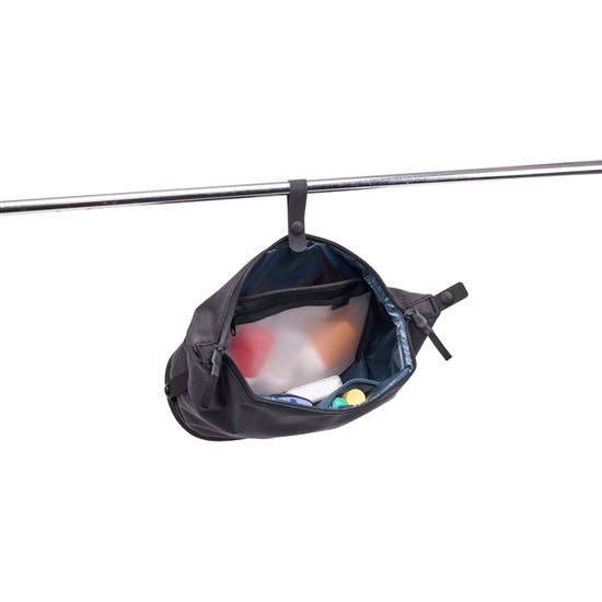 Až dorazíte do cíle, pohodlně zavěste toaletní tašku pomocí popruhu, který lze také schovat, když se nepoužívá.